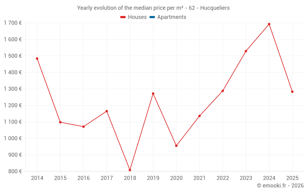 Real estate price map in the municipality of Hucqueliers, choose a section to see transactions by parcel.