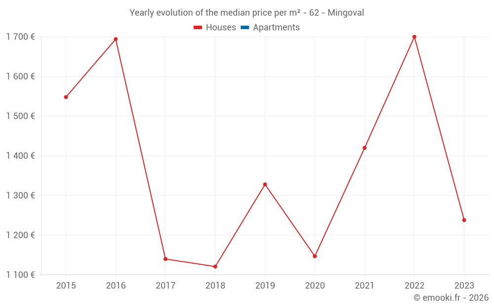 Evolution of the median price per m² of houses