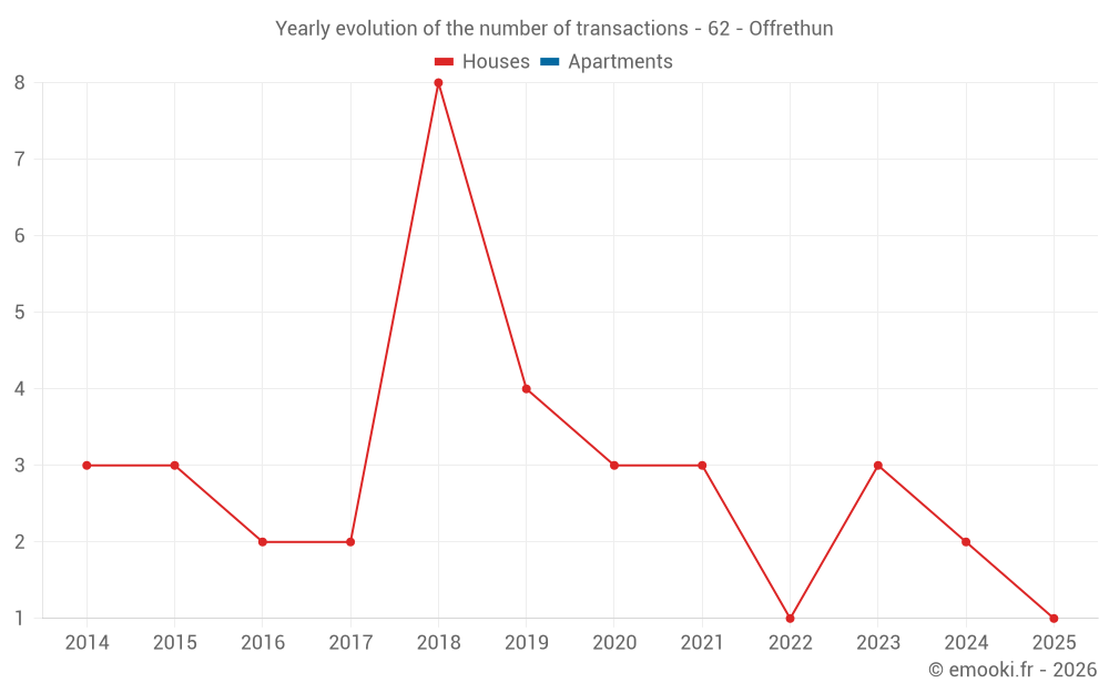 Real estate price map in the municipality of Offrethun, choose a section to see transactions by parcel.
