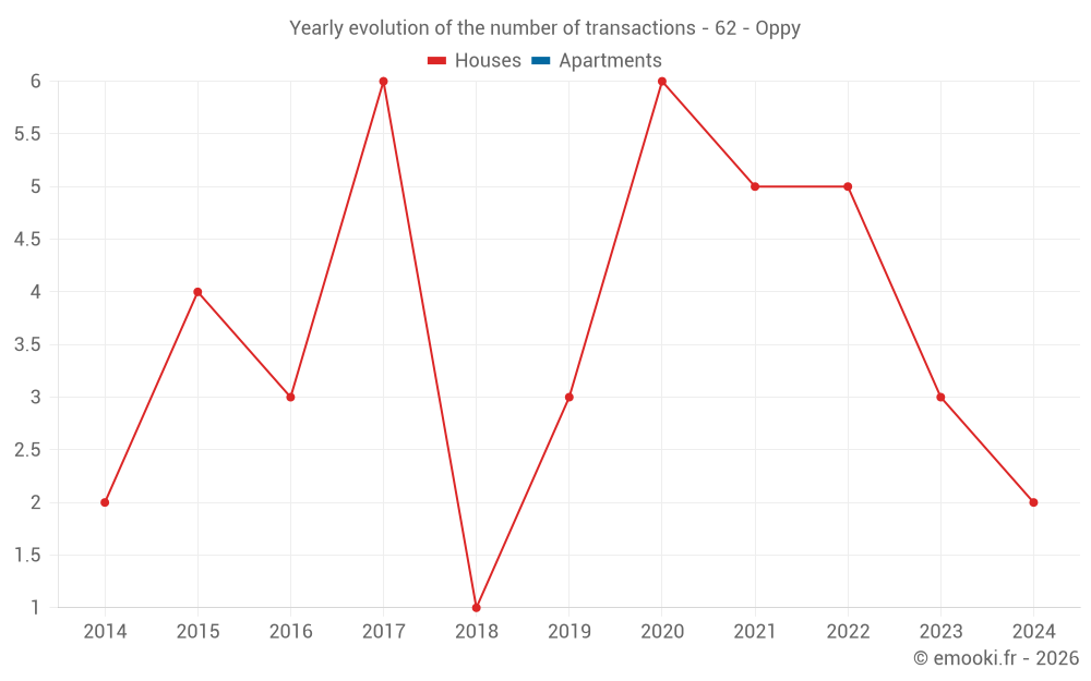 Real estate price map in the municipality of Oppy, choose a section to see transactions by parcel.