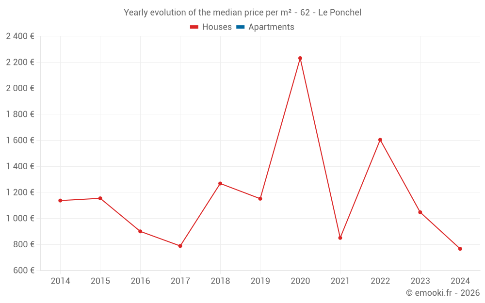 Real estate price map in the municipality of Le Ponchel, choose a section to see transactions by parcel.