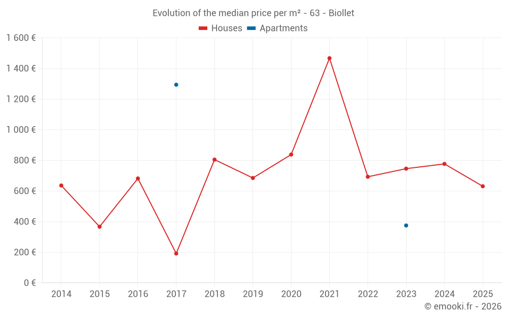 Real estate price map in the municipality of Biollet, choose a section to see transactions by parcel.