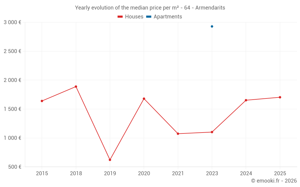 Real estate price map in the municipality of Armendarits, choose a section to see transactions by parcel.
