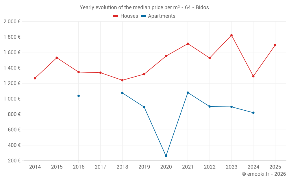 Evolution of the median price per m² of apartments