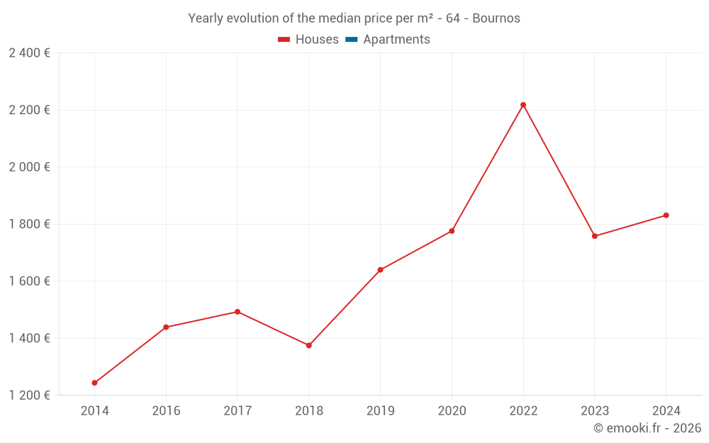 Evolution of the median price per m² of houses