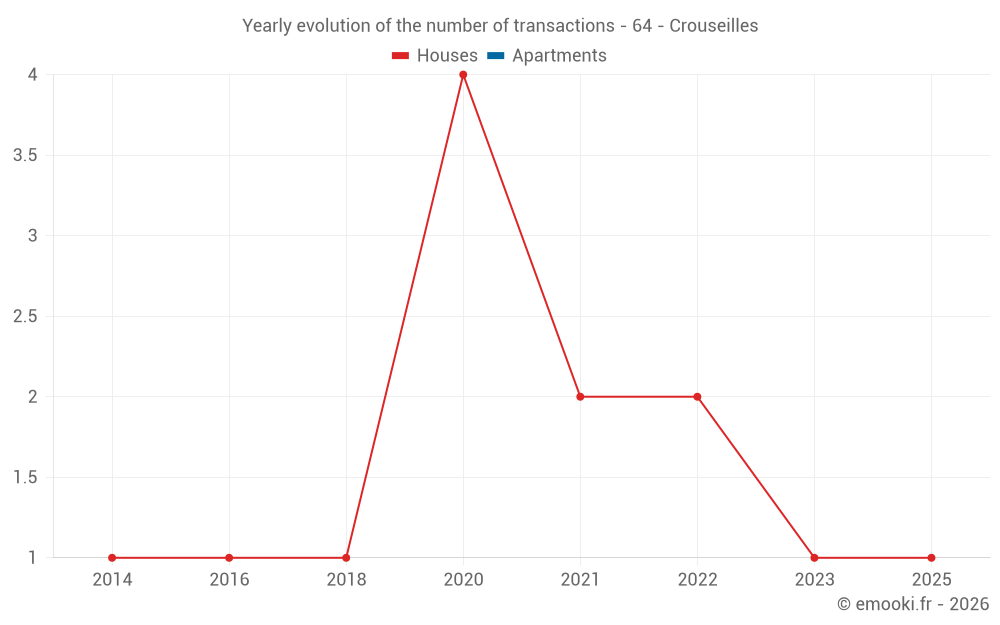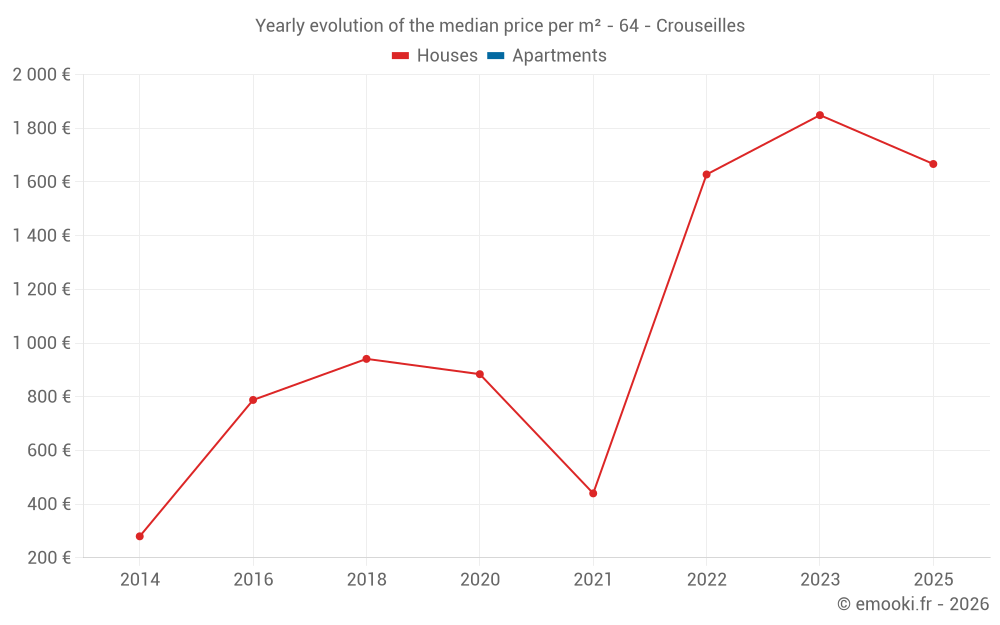 Real estate price map in the municipality of Crouseilles, choose a section to see transactions by parcel.