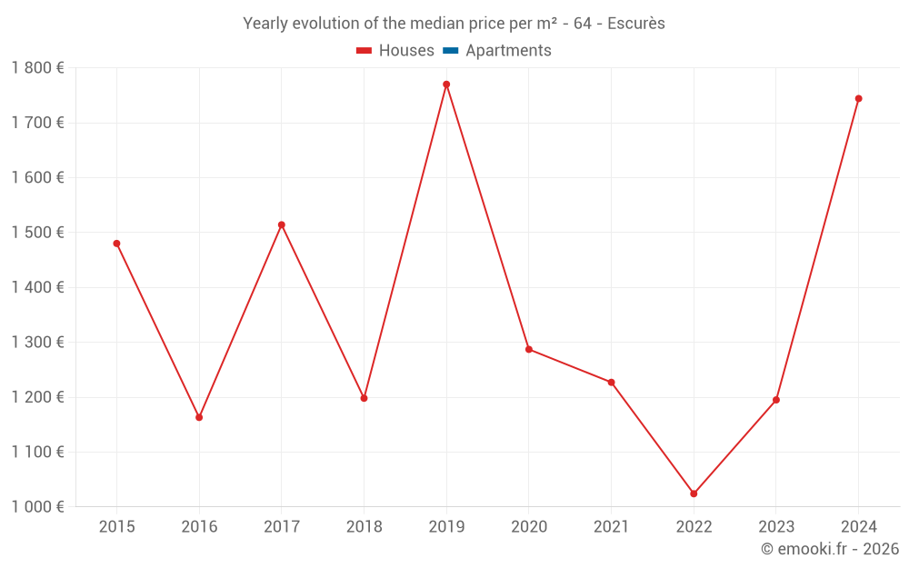 Evolution of the median price per m² of houses