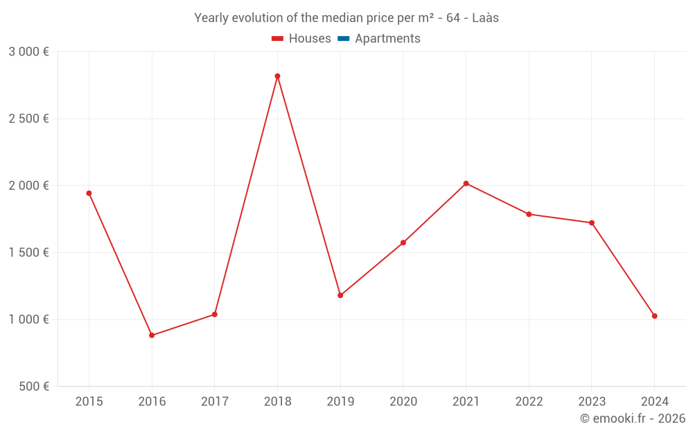 Real estate price map in the municipality of Laàs, choose a section to see transactions by parcel.