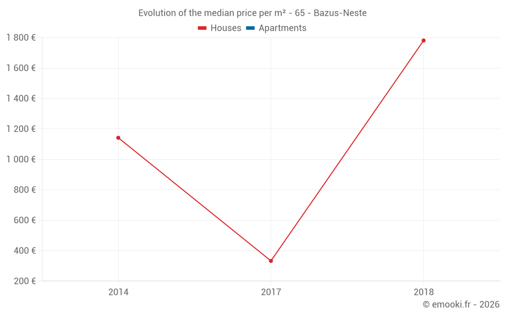 Real estate price map in the municipality of Bazus-Neste, choose a section to see transactions by parcel.