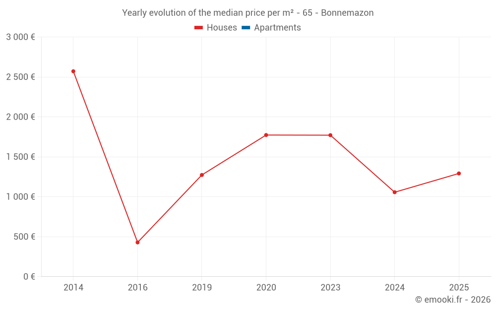 Real estate price map in the municipality of Bonnemazon, choose a section to see transactions by parcel.