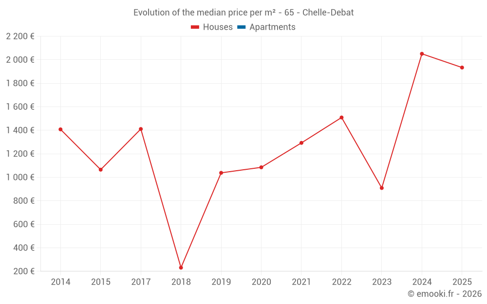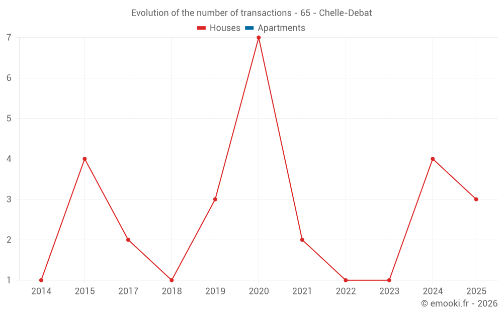Real estate price map in the municipality of Chelle-Debat, choose a section to see transactions by parcel.