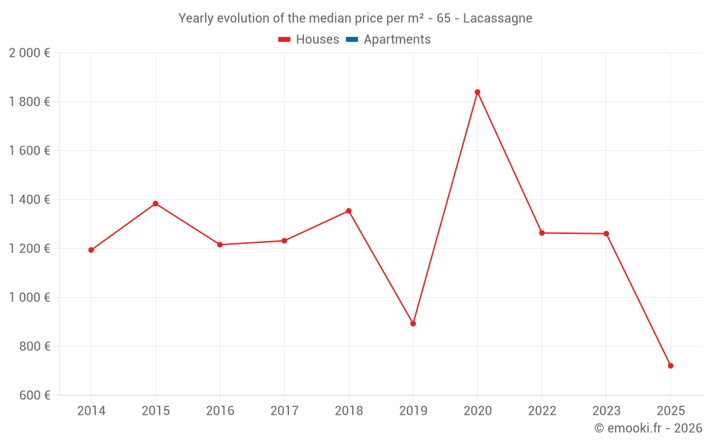 Real estate price map in the municipality of Lacassagne, choose a section to see transactions by parcel.