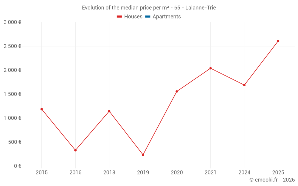 Real estate price map in the municipality of Lalanne-Trie, choose a section to see transactions by parcel.