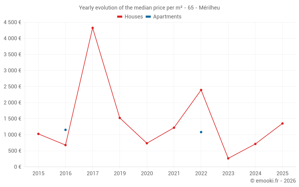 Real estate price map in the municipality of Mérilheu, choose a section to see transactions by parcel.