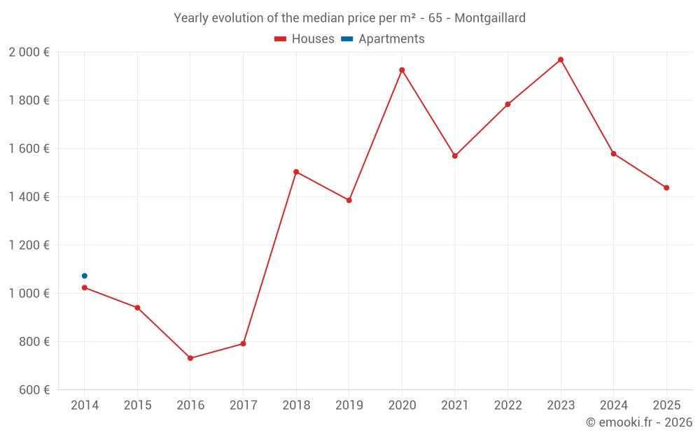 What is the price per m2 of houses in Montgaillard?