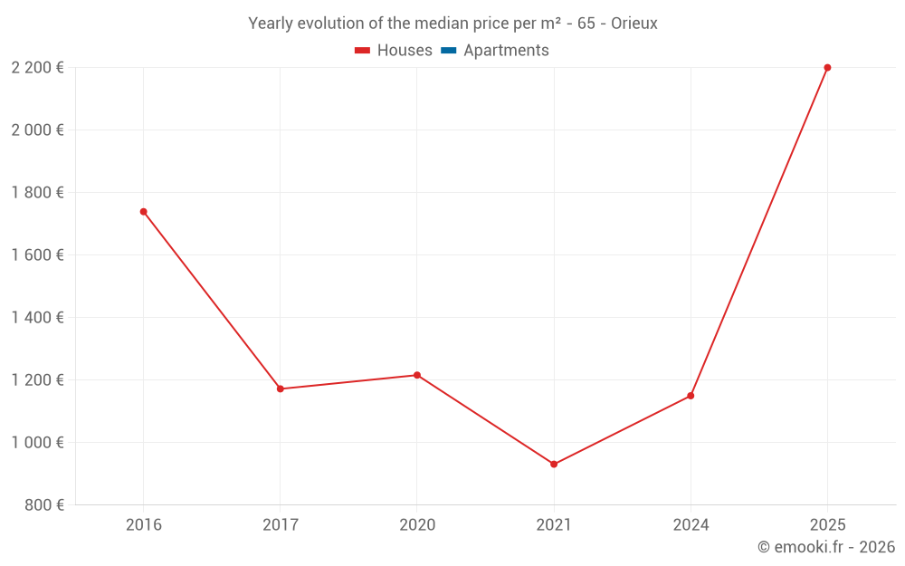 Evolution of the median price per m² of houses