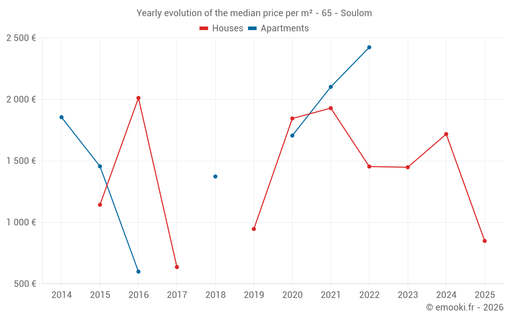Real estate price map in the municipality of Soulom, choose a section to see transactions by parcel.