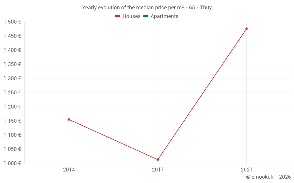 Evolution of the median price per m² of houses