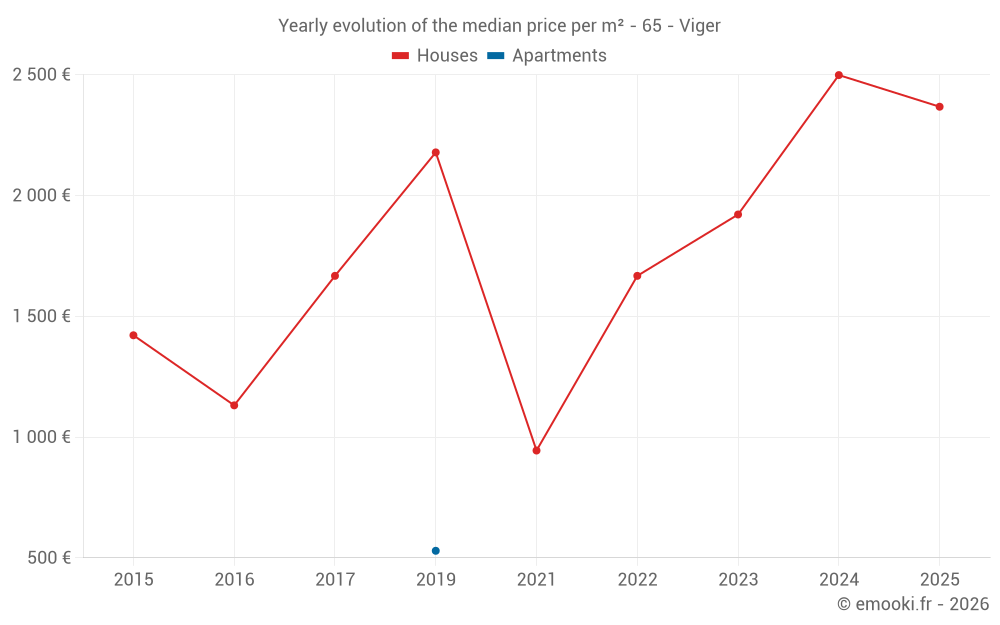 Evolution of the median price per m² of houses