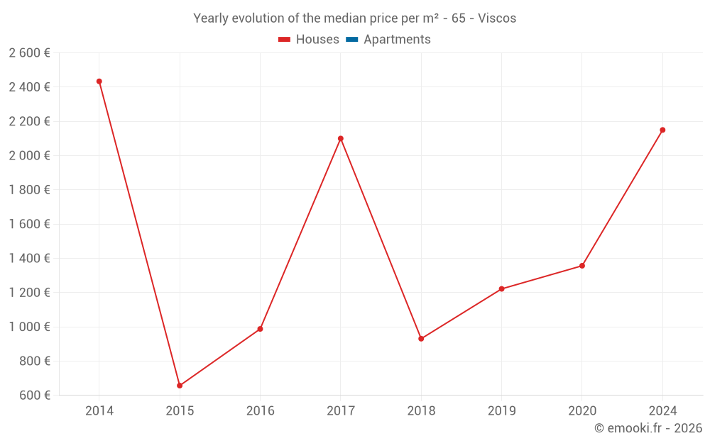 Real estate price map in the municipality of Viscos, choose a section to see transactions by parcel.