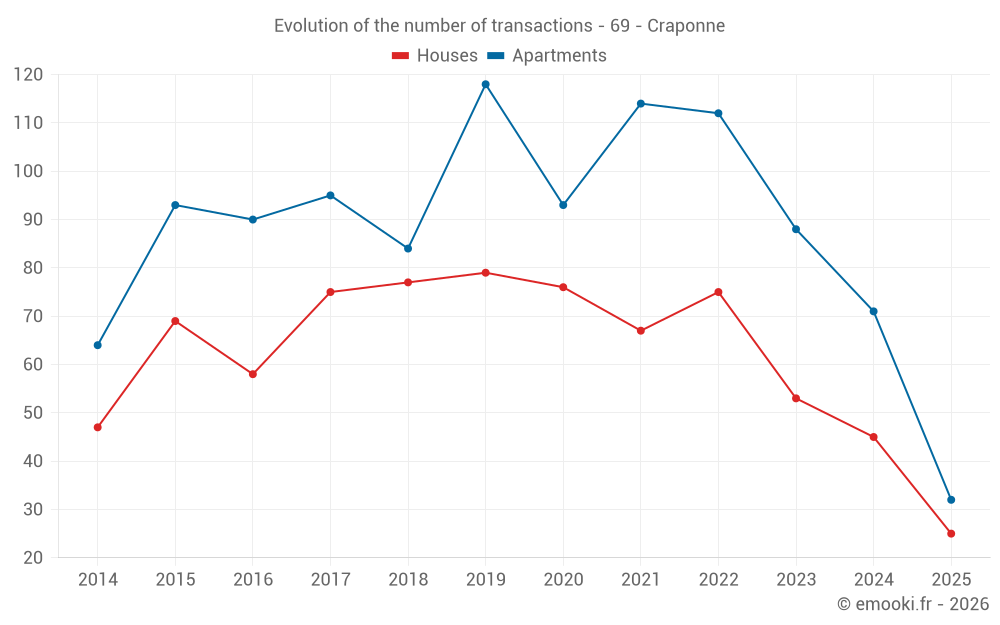 Median price on the 25 transactions of the last 6 months.