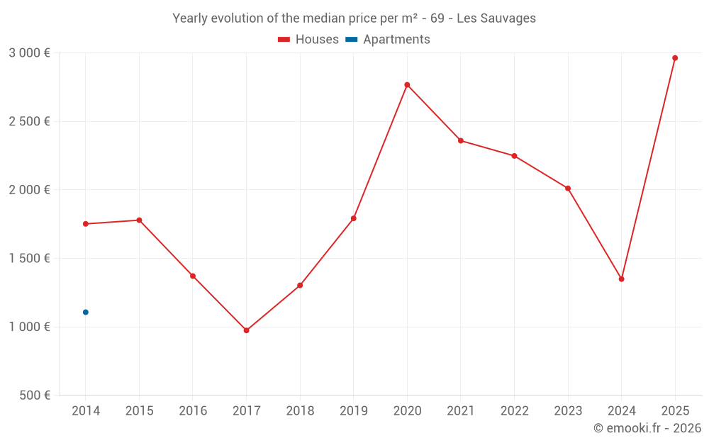 Real estate price map in the municipality of Les Sauvages, choose a section to see transactions by parcel.