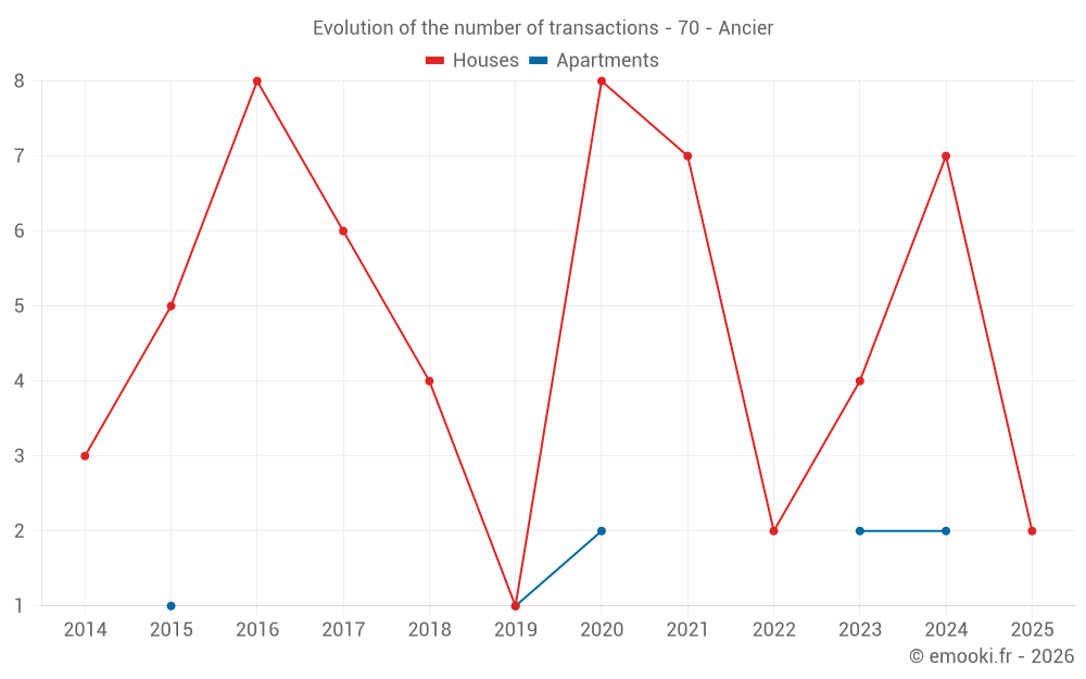 Real estate price map in the municipality of Ancier, choose a section to see transactions by parcel.
