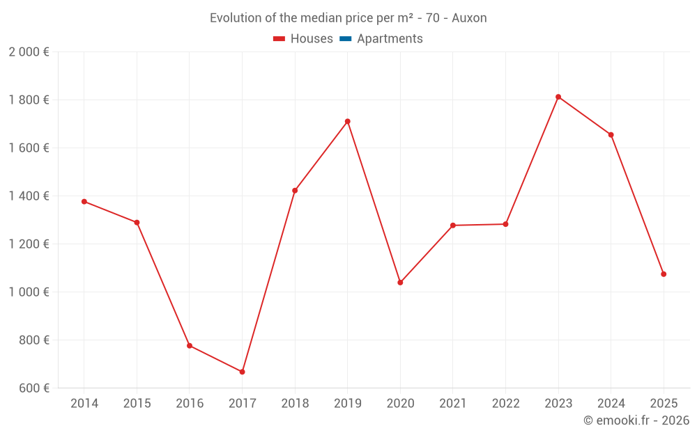 Real estate price map in the municipality of Auxon, choose a section to see transactions by parcel.