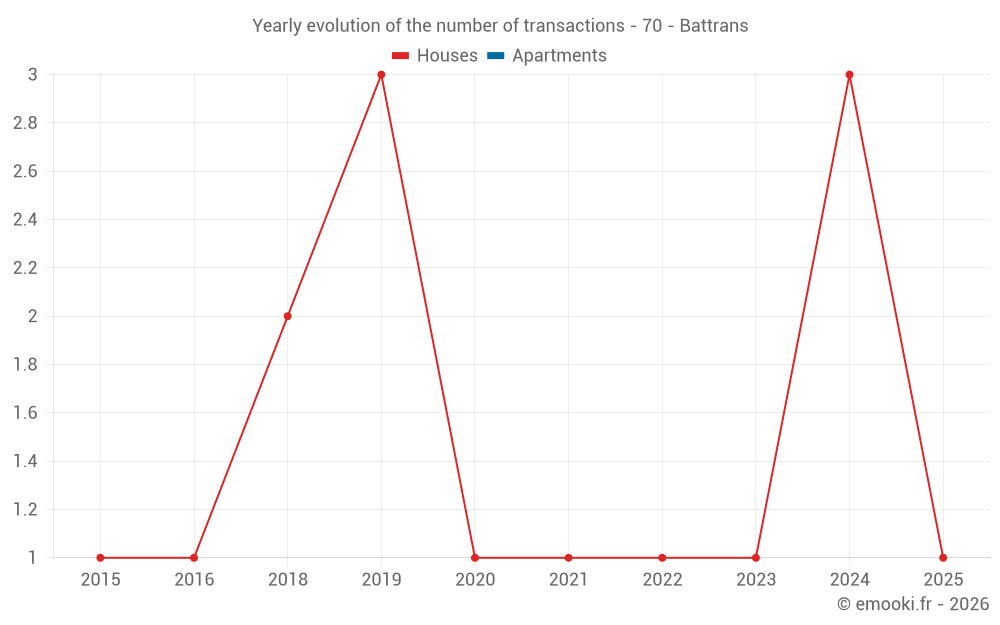 Real estate price map in the municipality of Battrans, choose a section to see transactions by parcel.