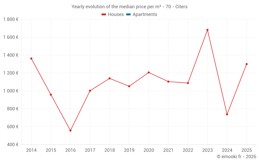 Real estate price map in the municipality of Citers, choose a section to see transactions by parcel.