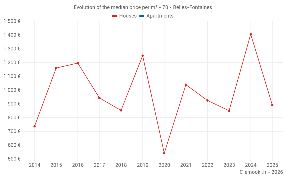 Real estate price map in the municipality of Belles-Fontaines, choose a section to see transactions by parcel.