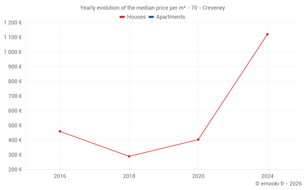 Real estate price map in the municipality of Creveney, choose a section to see transactions by parcel.
