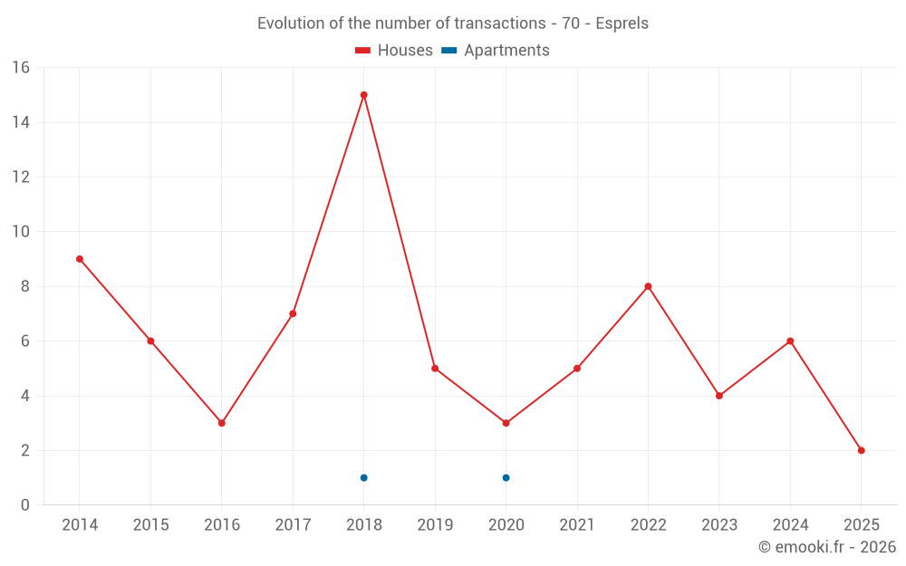 Real estate price map in the municipality of Esprels, choose a section to see transactions by parcel.