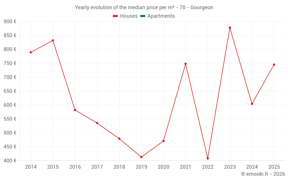 Real estate price map in the municipality of Gourgeon, choose a section to see transactions by parcel.
