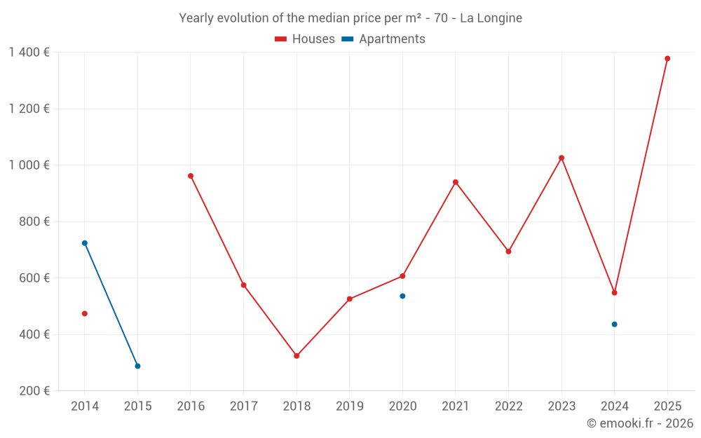 Real estate price map in the municipality of La Longine, choose a section to see transactions by parcel.