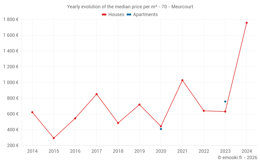 Real estate price map in the municipality of Meurcourt, choose a section to see transactions by parcel.