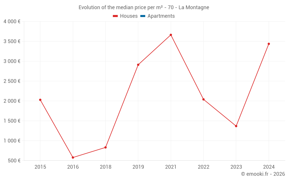Real estate price map in the municipality of La Montagne, choose a section to see transactions by parcel.