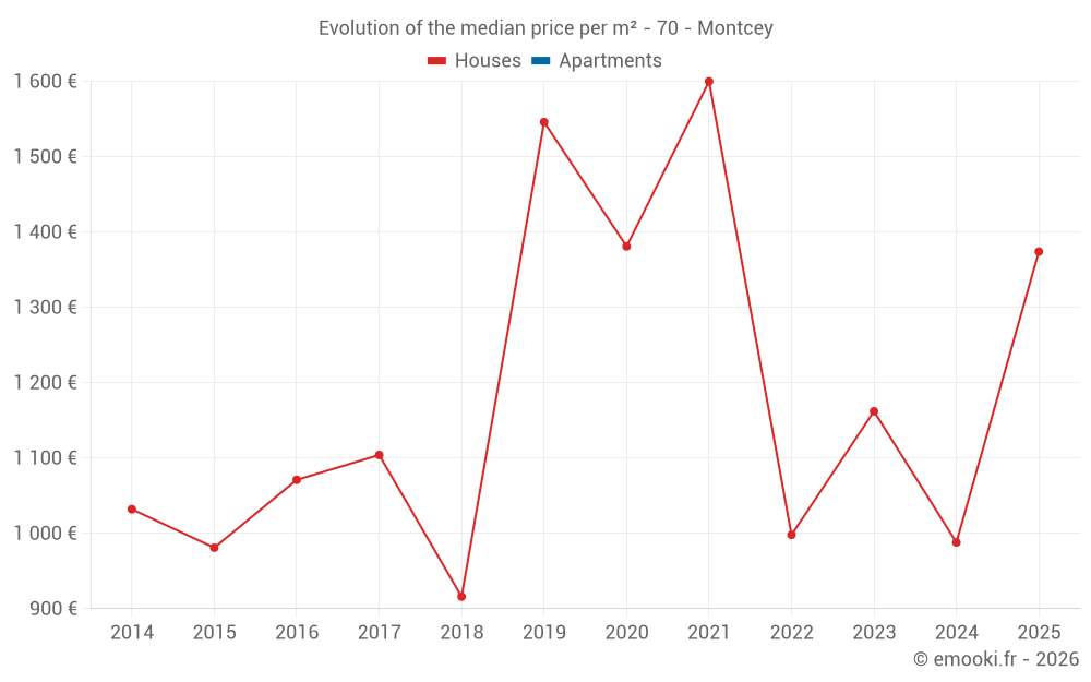 Real estate price map in the municipality of Montcey, choose a section to see transactions by parcel.