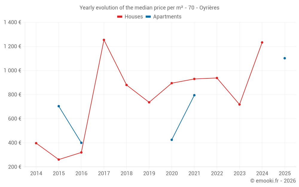 Real estate price map in the municipality of Oyrières, choose a section to see transactions by parcel.