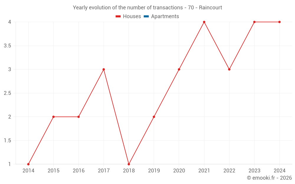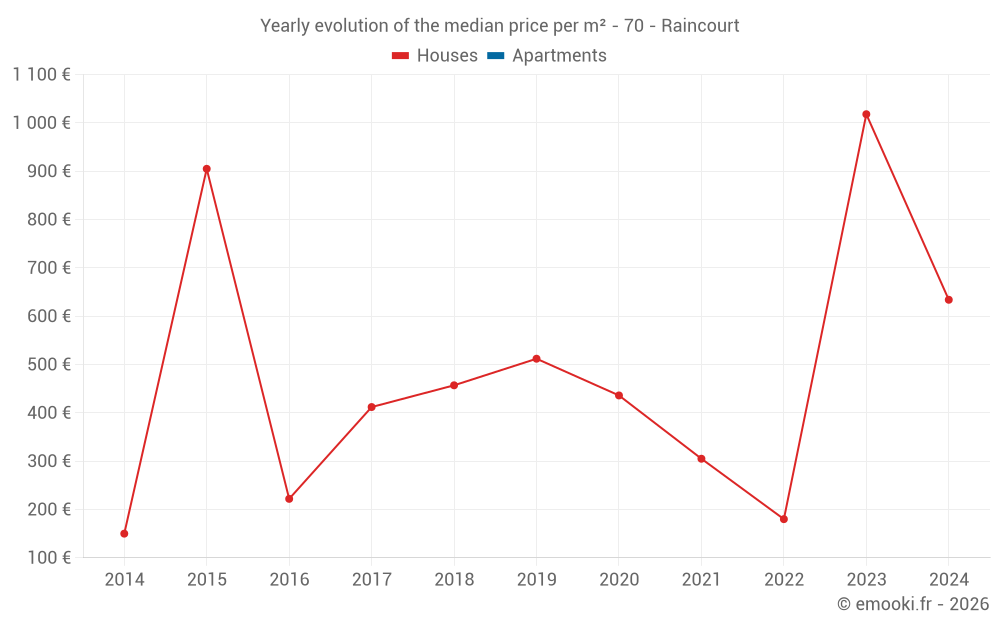 Real estate price map in the municipality of Raincourt, choose a section to see transactions by parcel.