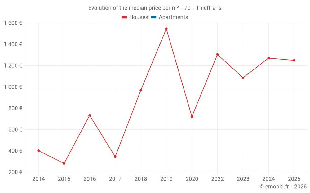 Real estate price map in the municipality of Thieffrans, choose a section to see transactions by parcel.