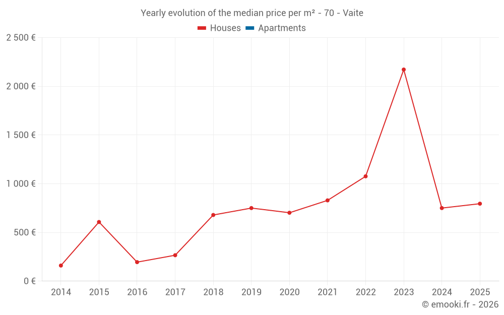 Real estate price map in the municipality of Vaite, choose a section to see transactions by parcel.