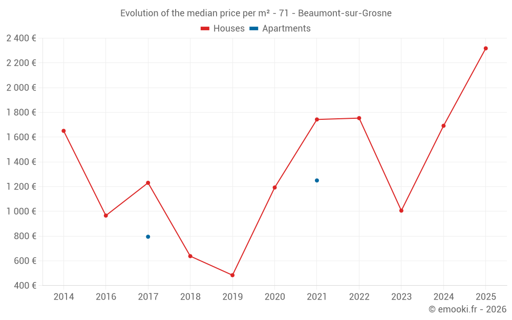Median price on the 2 transactions of the last 120 months.