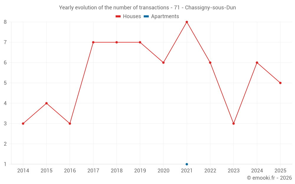 The price per m² of houses has decreased by 13% since 1 year, but it has increased by 87% in 7 years.