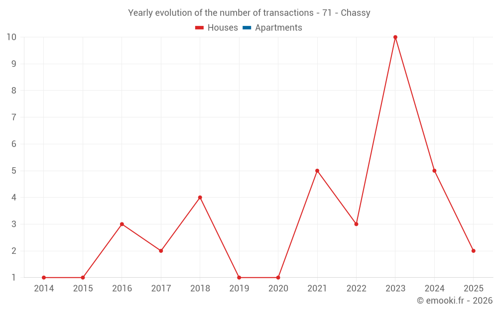Real estate price map in the municipality of Chassy, choose a section to see transactions by parcel.
