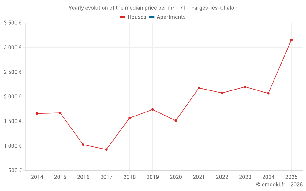 Real estate price map in the municipality of Farges-lès-Chalon, choose a section to see transactions by parcel.