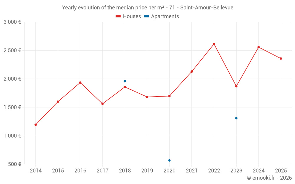The price per m² of houses has decreased by 10% since 3 years, but it has increased by 97% in 11 years.