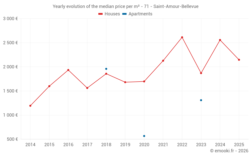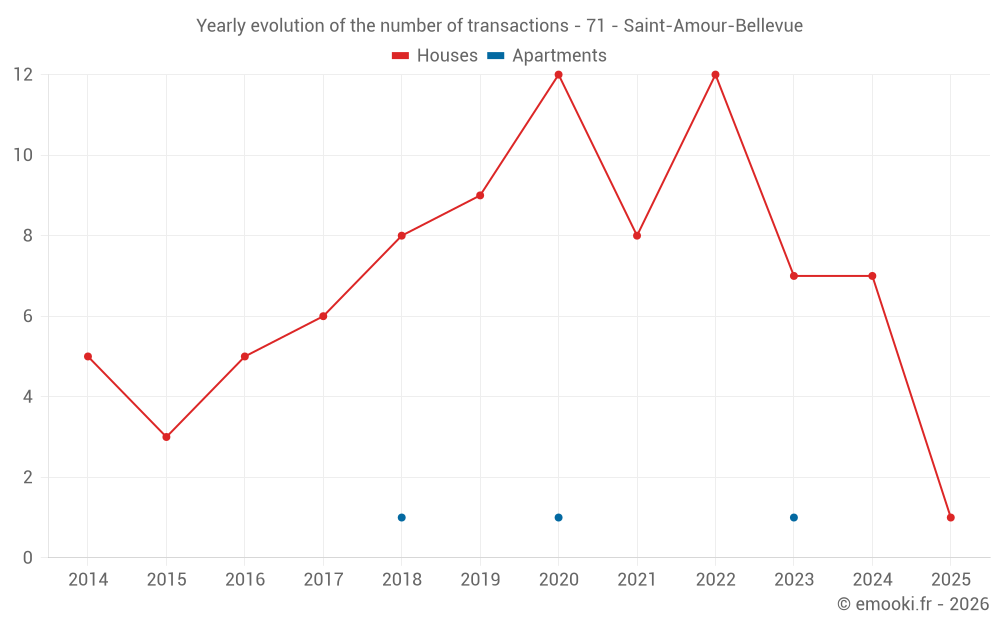 Real estate price map in the municipality of Saint-Amour-Bellevue, choose a section to see transactions by parcel.