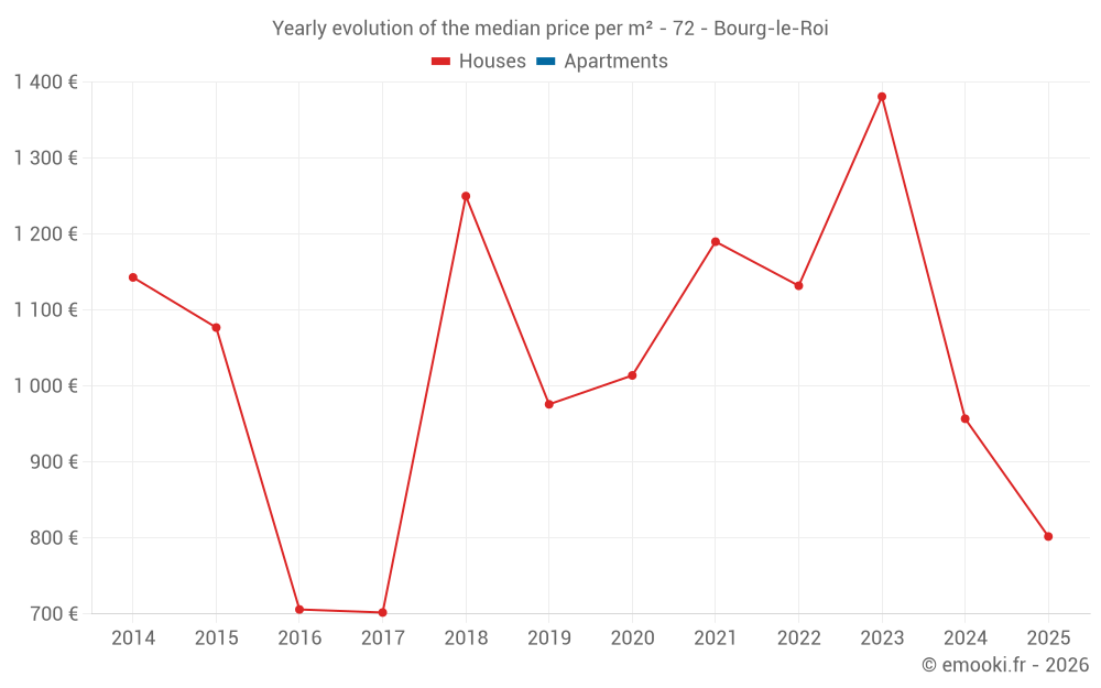 Evolution of the median price per m² of houses