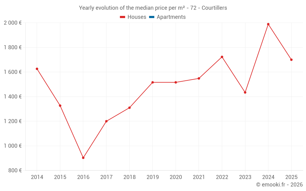 Real estate price map in the municipality of Courtillers, choose a section to see transactions by parcel.